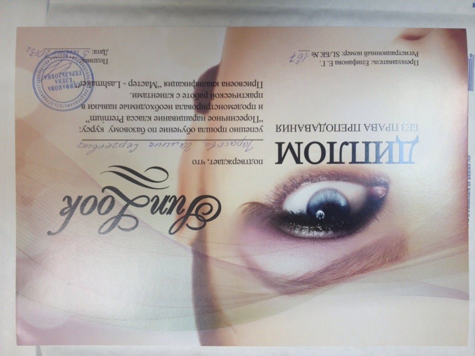 Прошла курсы повышения квалификации. Онлайн курс по наращиванию ресниц. Обучения заняло 40 дней далее еще продляла доступ на 4 недели. Это очень удобная функция для обучения и отработки домашних заданий. Очень удобный формат обучения. Отзывчивые преподователи, которые в подробностях коментитуют твою работу по выполненому домашнему заданию. В курсе представлен тексстовый и видео формат темы. Мои работы стали лучше после прохоождения обучения. Ранее я проходила офлайн обучение в своем городе, которое заняло 4 дня. Это было 5 лет назад и после этого я не решилась работать лэшмейкером, сейчас после прохождения курса я решила снова попробовать и лчень давольна осталась результатом. Спасибо всем большое.
